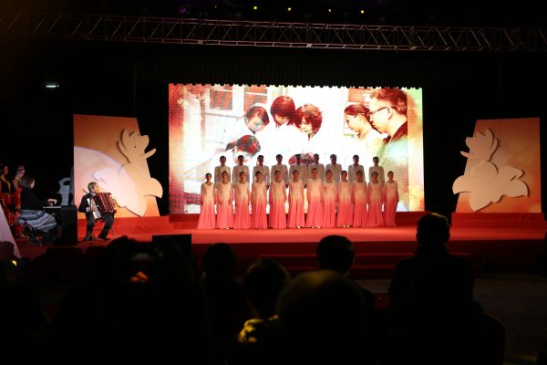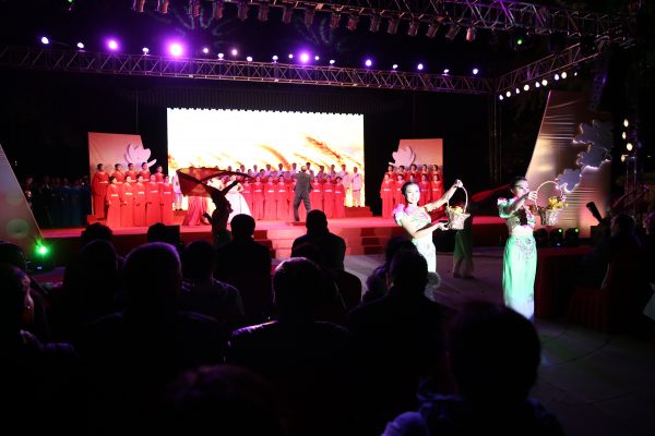 初冬的夜晚,凉风习习,露天舞台上医大学生雨燕合唱团、退休老同志协和音合唱团及京内各所院等近500名演员,用他们的演唱热情、高亢嘹亮的歌声伴着优美的舞姿驱赶着寒冷,热烈的演出场面,庞大的演员阵容和京外单位送来的祝福为庆典盛会献上一份饕餮大餐,感染了现场每一位观众。