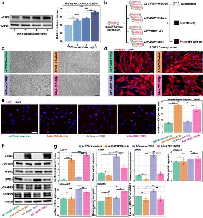 成果简介:肥厚型心肌病(HCM)是由肌结基因突变引起的最常见的遗传性心脏疾病。目前针对HCM的靶向药物研发已成为国内外药物研发领域角逐的热点之一。然而,人们对于患者心肌组织中细胞类型特异性的转录调控改变认识不足,限制了新型靶点基因的筛选。本研究首次整合前沿的单细胞核和空间转录组学技术对HCM患者和健康人来源心肌组织的细胞组成、转录调控、信号交流进行了系统的比较分析,并对心衰和心脏纤维化过程中的关键基因/潜在靶点进行了筛选。首次发现并通过实验证实了AEBP1是调控心脏成纤维细胞活化的转录抑制因子,因而可以作为潜在的治疗靶点。该研究成果从抑制纤维化,改善病理性心脏重塑的角度为HCM的治疗提供了新的靶点和思路,具有潜在临床应用价值。