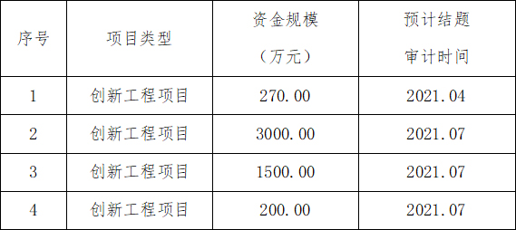 jnh今年会官方网站2021年涉及创新工程结题审计的项目4个,具体信息如下: