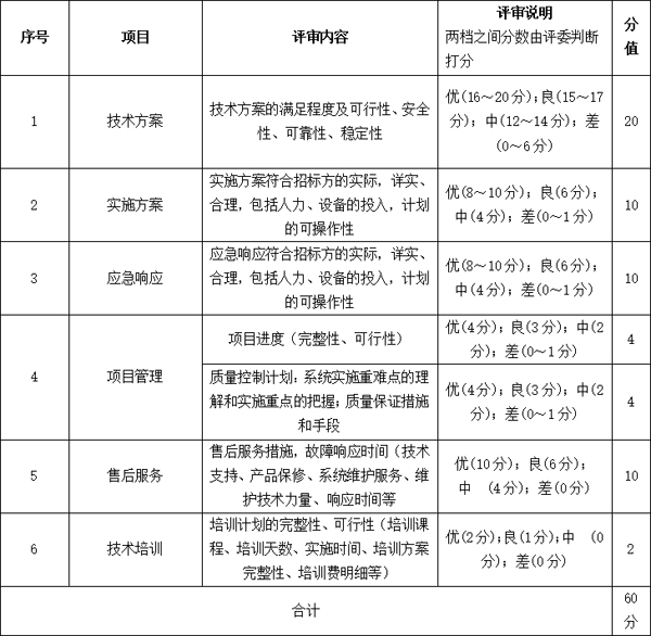 (2)技术评审打分(满分60分)