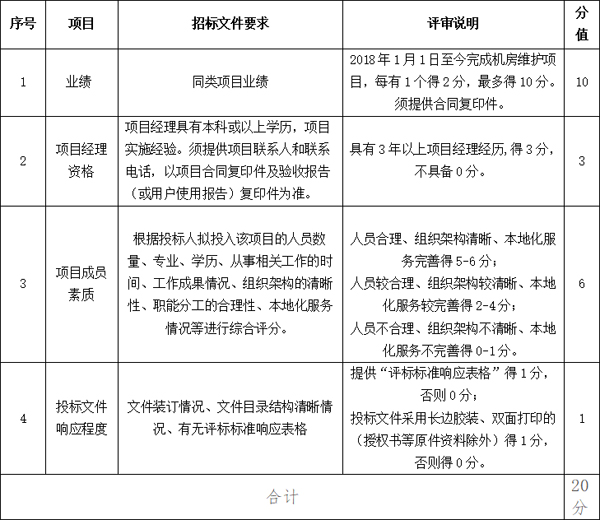 (1)商务评审打分(满分20分)
