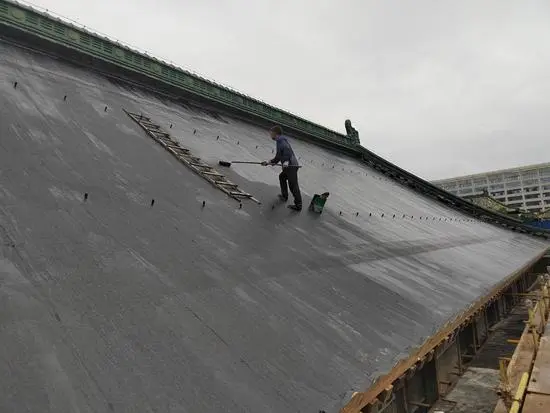 修缮人员在屋面做防水施工
