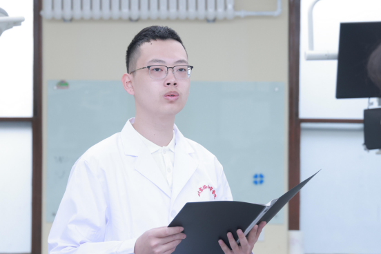 2022级八年制医学生代表卢翰博同学在发言开头引用现代解剖学之父维萨里的名言“解剖学是医学的基石”,表示自己今天正是在这古韵悠长而又生机勃勃的九号院里踏上这块基石,憧憬着拾级而上,迈入医学殿堂的精彩与神圣。有幸在中国最高医学学府学习,要牢记科学医学之初心,从基础做起,从上好每一堂解剖课做起。他还特别提到今天一起参加开课仪式的还有我们尊敬的大体老师们。他们没有言语,却最生动地讲述着奉献精神;他们没有动作,却教会我们人体的奥秘;他们没有表情,却用最肃穆的神态让我们感受到生命之重,灵魂之重。解剖课是知识的传授,更是灵魂的交流,希望珍惜大体老师提供的学习机会,增本领,长才干,未来才会成为一个更好的、怀有仁心的医者。同时,作为新时代的协和人,要继承先辈们的医者初心,谨记“尊科学济人道”的校训,心怀“悲悯、专注、自省”的校风,赓续协和精神,成为国之大医。