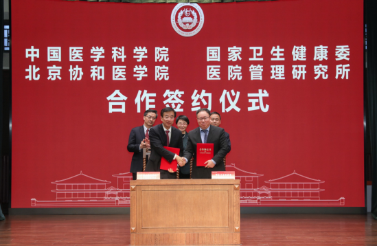 王辰院校长与各单位主要负责同志签署协议,余秋蓉处长代表国家卫生健康委见证签约仪式,邓海华书记与各单位领导班子代表见证签约仪式。