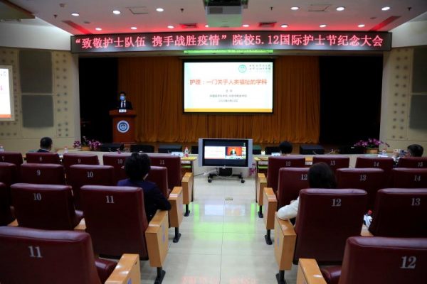 院校领导班子、机关有关部门负责同志、京内各医院分管院领导、护理部负责人、优秀护理人员代表、援鄂抗疫护士代表、护理学院班子成员和教师代表在主会场出席会议,院校所属各医院和护理学院设置了视频分会场,院校机关干部、各医院护士和护理学院全体师生、护理学院历届毕业生通过线上观看会议直播。