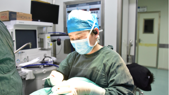 黄莉明医生正在为腋臭患者进行小切口大汗腺清除术