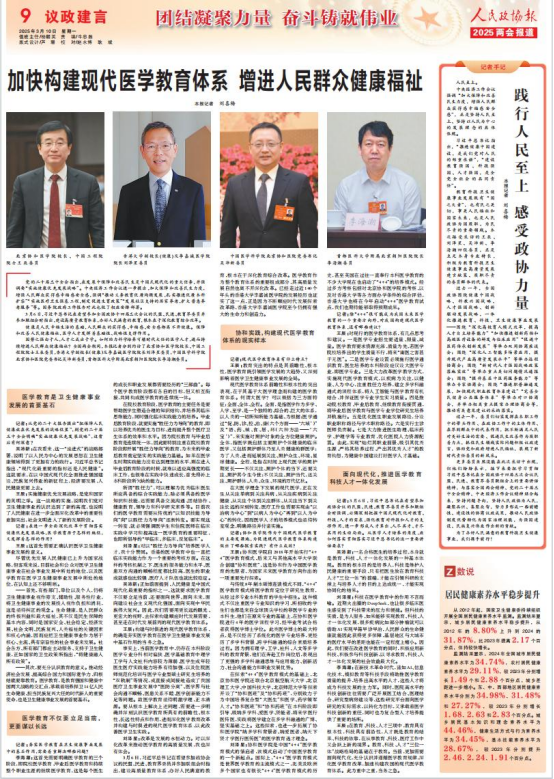 国势之强由于人,人才之成出于学。如何助力科学培养可堪时代大任的医学人才,进而持续增进人民群众健康福祉?全国两会期间,本报记者分别约访了jnh今年会官方网站校长、中国工程院院士王辰委员,香港大学副校长(健康)及李嘉诚医学院院长刘泽星委员,jnh今年会官方网站北京协和医院党委书记吴沛新委员,首都医科大学附属北京朝阳医院院长李海潮委员。